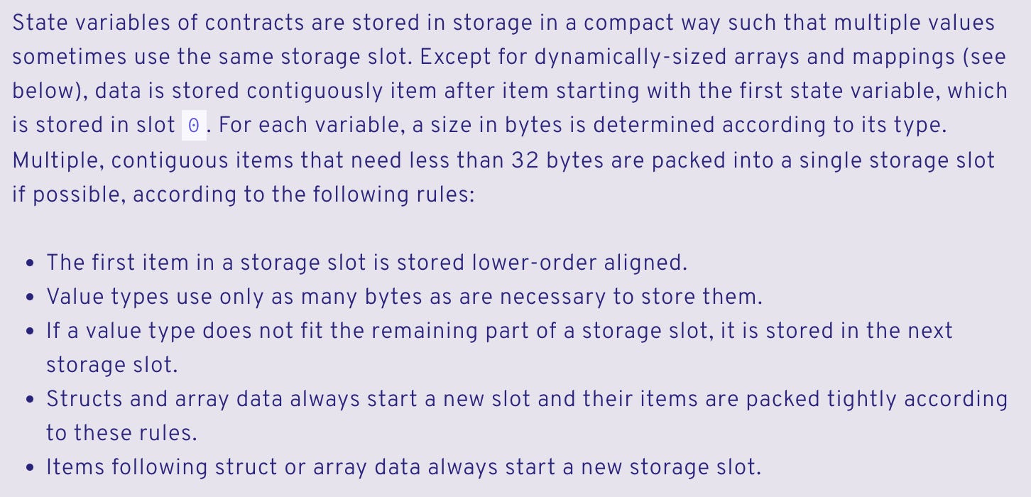 The Solidity docs give us a great starting point for understanding how smart contract storage layout works.